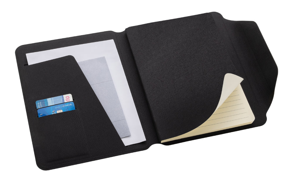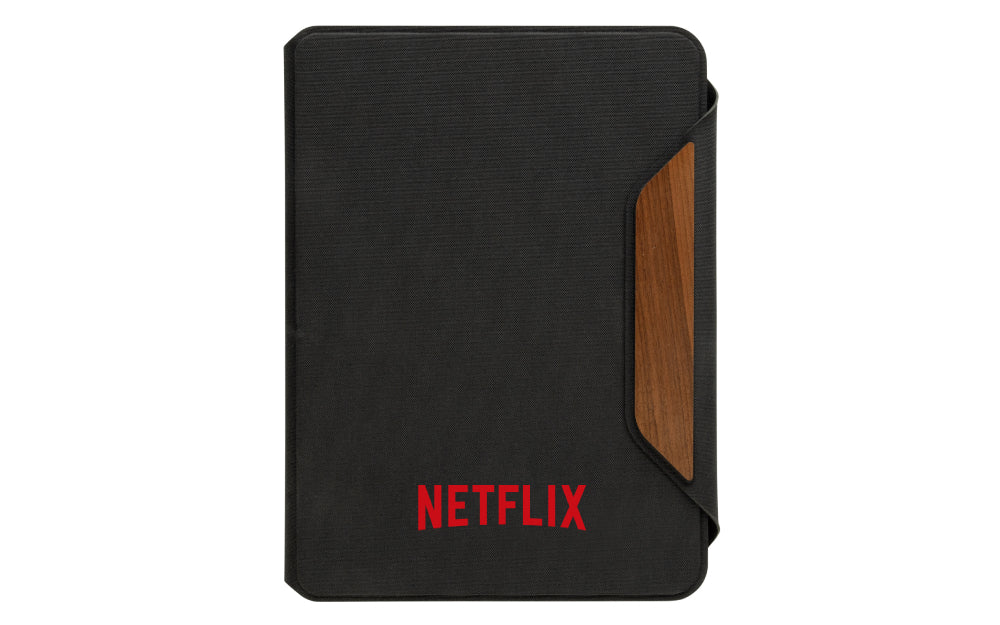 The Teri portfolio blends recycled PET fabric with warm walnut accents for a sophisticated look. Perfect for meetings or note-taking on the go.