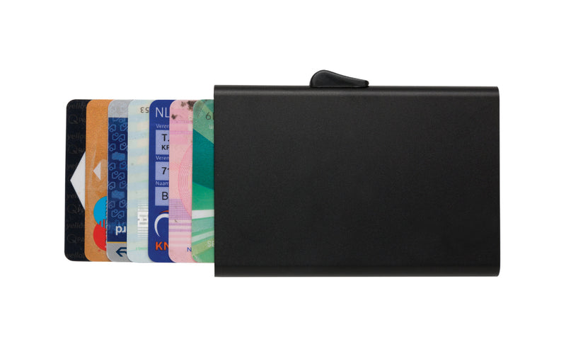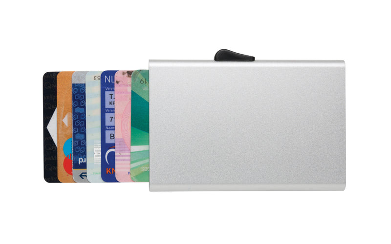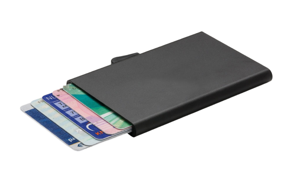 Slim, strong, and super smart. This aluminium RFID card holder keeps up to 7 cards safe from electronic scanning while protecting them from bends or scratches. The easy side slider pops your cards up smoothly, so grabbing what you need is quick and fuss‑free.