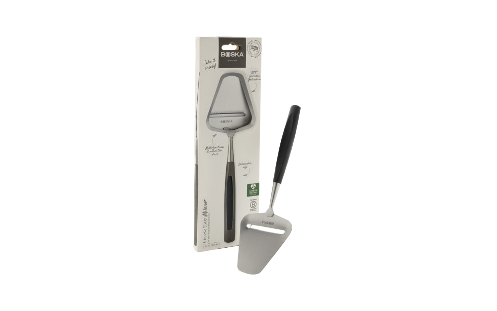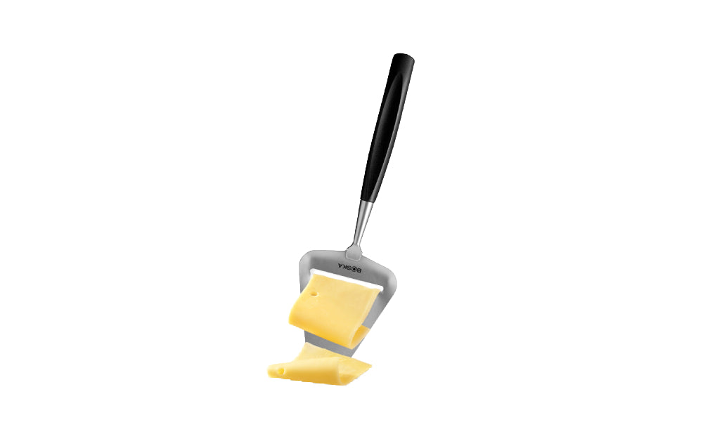 Slice like a pro. This elegant slicer delivers smooth, even cuts on your favorite cheeses and features a modern handle design—because every bite should look as good as it tastes.