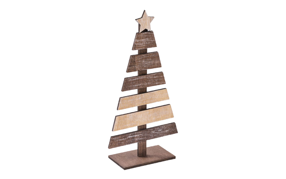 Rustic and festive. This wooden tree decoration adds cozy Christmas charm to any corner of your home.