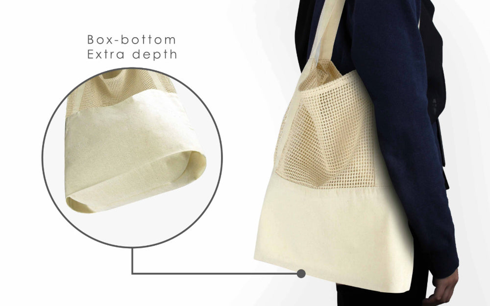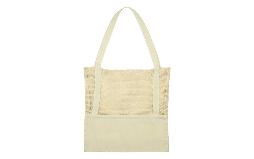 Made with natural cotton mesh and packaged in an eco-friendly paper brown sleeve, this tote bag is both stylish and environmentally friendly. Say goodbye to single-use plastic bags!